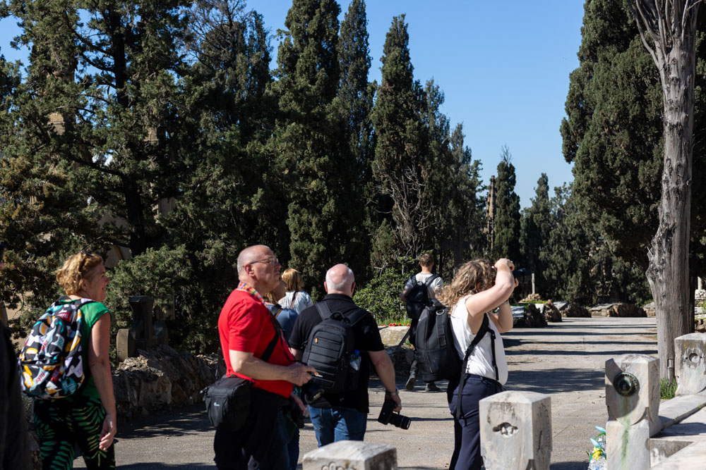 De rondleiding ging langs monumentale pantheons, van mausolea tot torenhoge muren vol nissen en graven. Alles voelt als een eigen stad – met straten die doen denken aan het strakke stratenplan van Eixample.