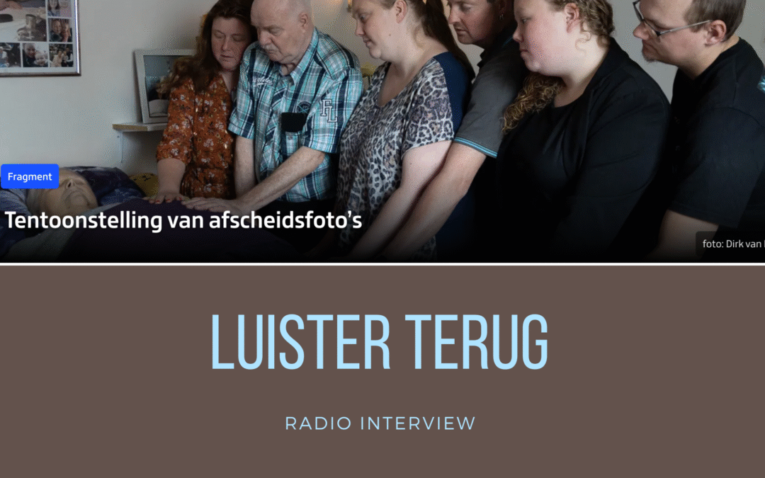 Wil je het hele gesprek terugluisteren? Klik dan op deze link om het fragment van Villa vdB te beluisteren. Het duurt nog geen 10 minuten, maar het geeft je een goed beeld van de emotionele impact van afscheidsfotografie.